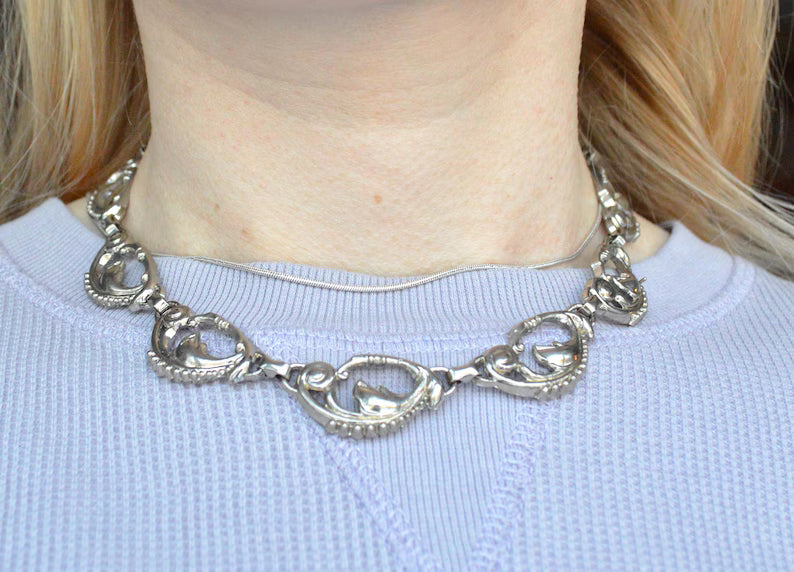 Vintage Mexican Sterling Silver Onyx Scarab Necklace - Signed JJG Co Mexico 925 - Egyptian Revival Festoon Fringe - Hand Carved Taxco Style Jewelry